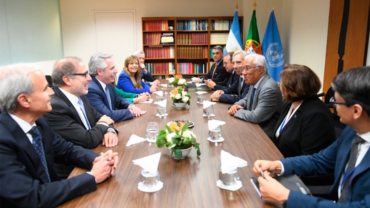 El presidente Alberto Fernández mantuvo una reunión está tarde en Nueva York con el primer ministro de Portugal, António Costa, junto a quien reafirmó el interés mutuo de fortalecer la cooperación bilateral y la integración regional.