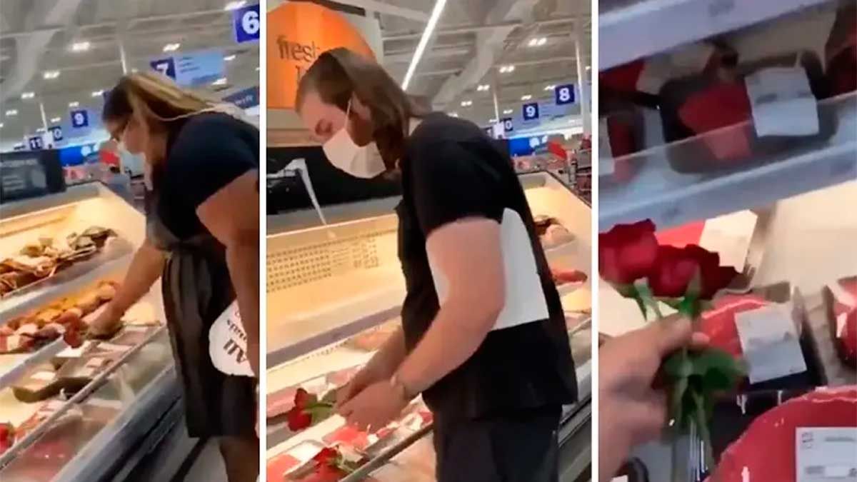 El polémico episodio quedó grabado en video y muestra como un grupo de veganos coloca flores sobre los cortes de carne en el freezer de un supermercado.