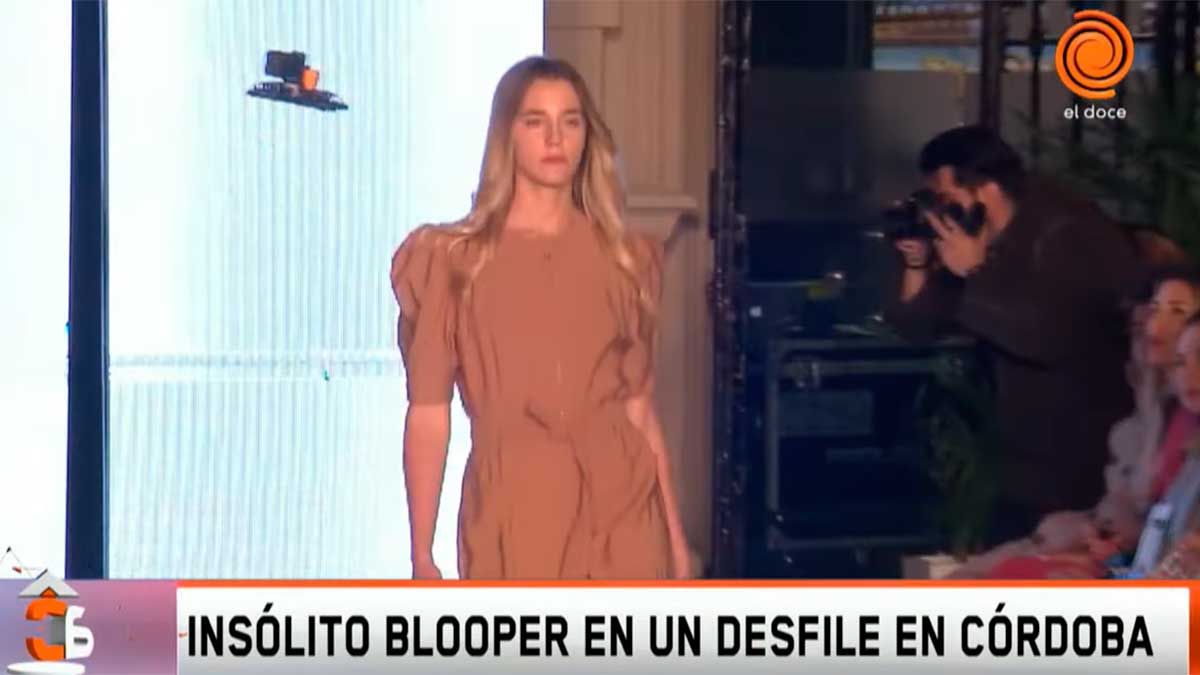 Un insólito blooper ocurrió cuando un dron chocó contra la cabeza de una modelo que caminaba por la pasarela de un desfile en Córdoba y se le enredó en el pelo. El público se sorprendió al ver cómo el pequeño vehículo aéreo no tripulado se aferró al cabello de la joven de tal manera que la chica debió abandonar el escenario. La modelo se tomó la situación con humor y no resultó herida.