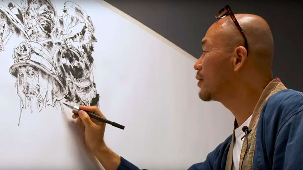 Kim Jung Gi era conocido en el mundo entero por su rapidez y su habilidad para la composición de sus dibujos, mediante unas estructuras y elementos decorativos que brotaban de sus manos sin ningún boceto previo.