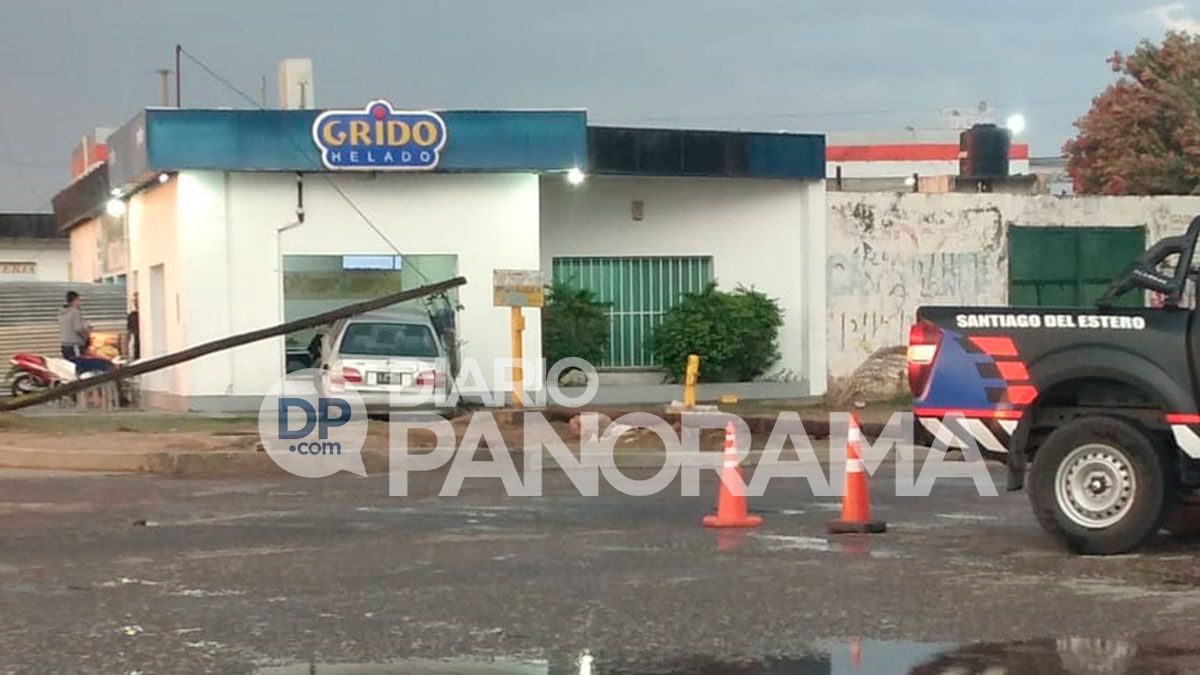 El vehículo no solo destrozó parte del local, sino que también rompió con postes de tendido eléctrico y de servicios.