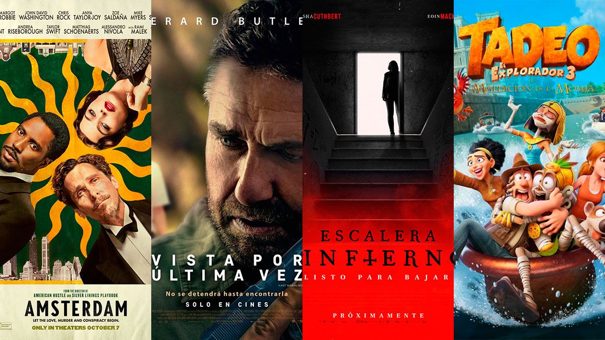 Los estrenos son Amsterdam, la nueva película de David O. Russel protagonizada por Anya Taylor-Joy, Christian Bale, John David Washington y Margot Robbie; Vista por ultima vez, cinta de suspenso encabeza por Gerard Butler; el largometraje de terror Escalera al infierno y la animación Tadeo El Explorador 3: la leyenda de la Momia.