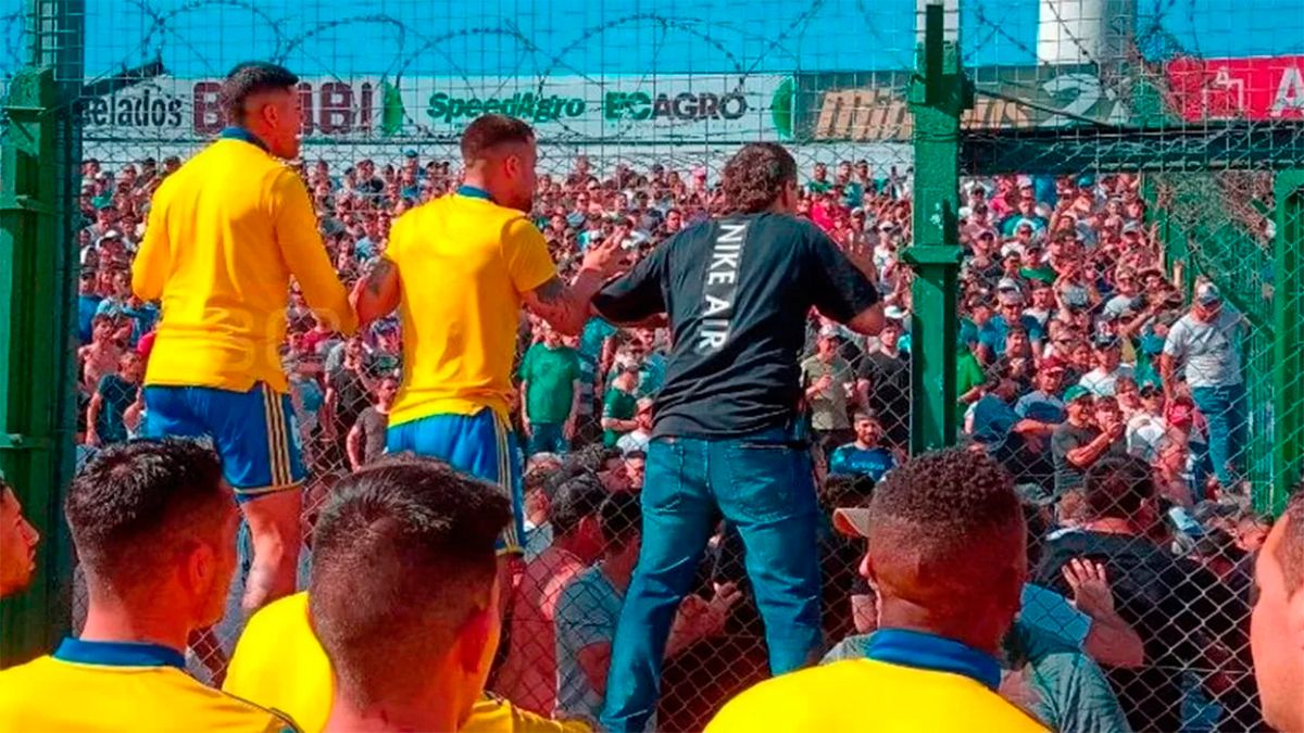 Las fuerzas policiales dentro de la cancha trataron de separar a los fanáticos (vale remarcar que compartían un mismo sector de tribuna) y hasta los propios futbolistas interrumpieron la entrada en calor en el verde césped, se acercaron hasta el alambrado y pidieron calma. El primero que salió desesperado hacia el lugar de la pelea fue Guillermo Pol Fernández y lo siguieron el resto de sus compañeros y todos los titulares del conjunto de Israel Damonte.
