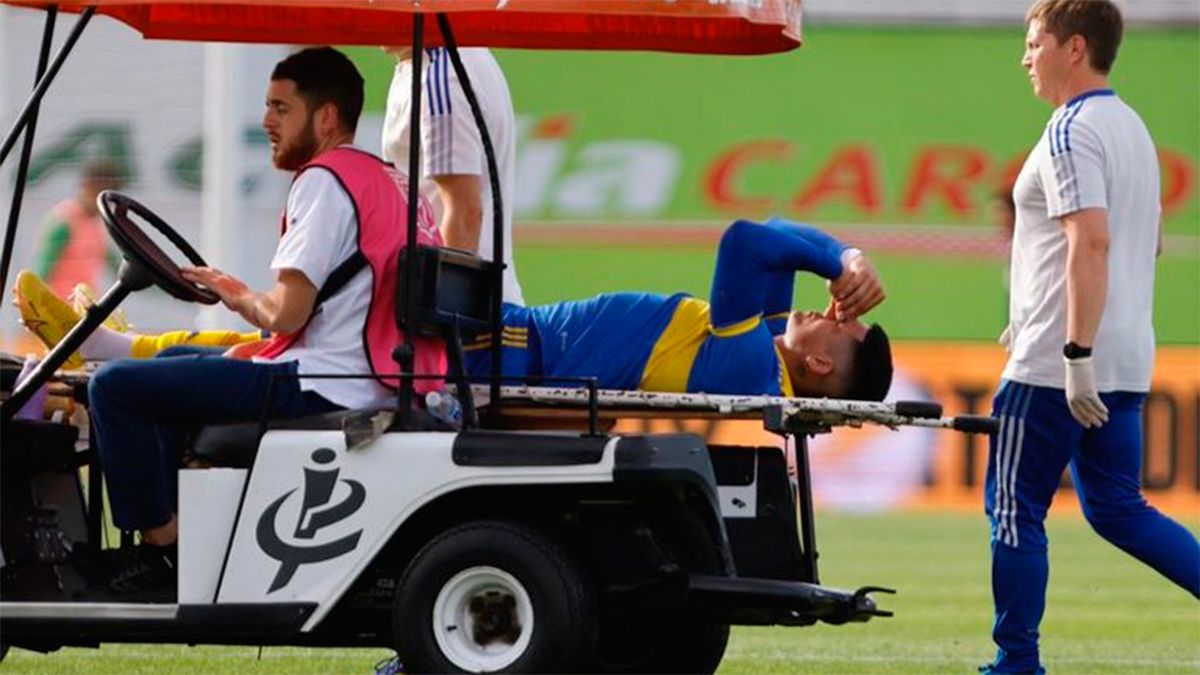 Boca tuvo el tiro de esquina y en el retroceso cuando se diluyó el ataque, Rojo fue a intentar recuperar la pelota pero terminó cayéndose solo. De inmediato pidió atención médica y no pudo ni probar a ver cómo estaba. Tras ser revisado por los médicos, se retiró del campo de juego en camilla.