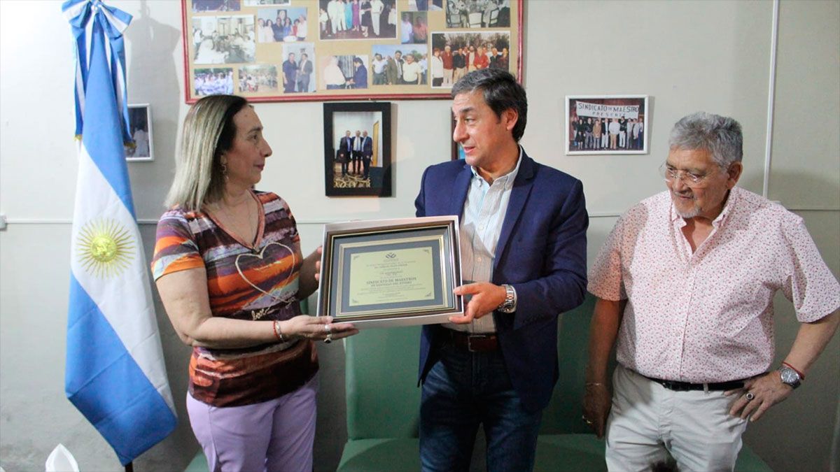 Con la presencia de la diputada nacional, Estela Neder; diputado provincial, Víctor Paz; secretarios generales de distintos gremios pertenecientes a la CGT y afiliados y delegados del Sindicato, el vicegobernador Silva Neder transmitió el afectuoso saludo y las felicitaciones del gobernador Zamora por este nuevo aniversario y ratificó el compromiso permanente del Gobierno provincial de trabajar junto a la docencia santiagueña por el progreso de Santiago del Estero.