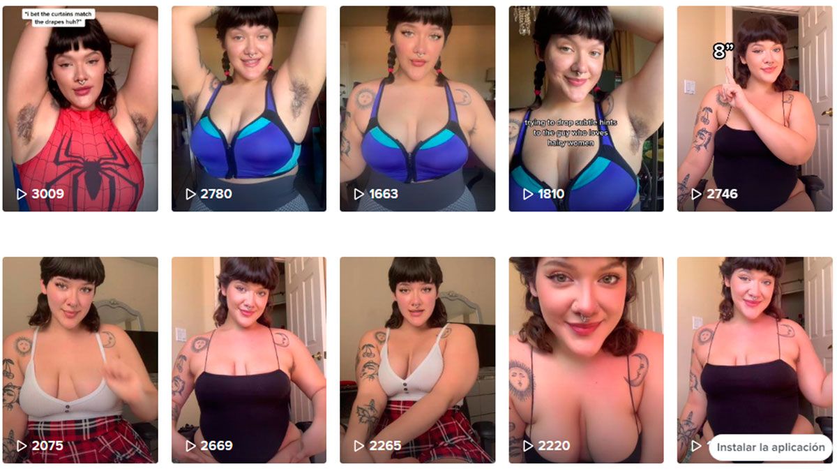 La mujer de 20 años, se diferencia del resto de las usuarias ya que eligió subir fotos y videos mostrando su vello corporal, lo que es poco usual.