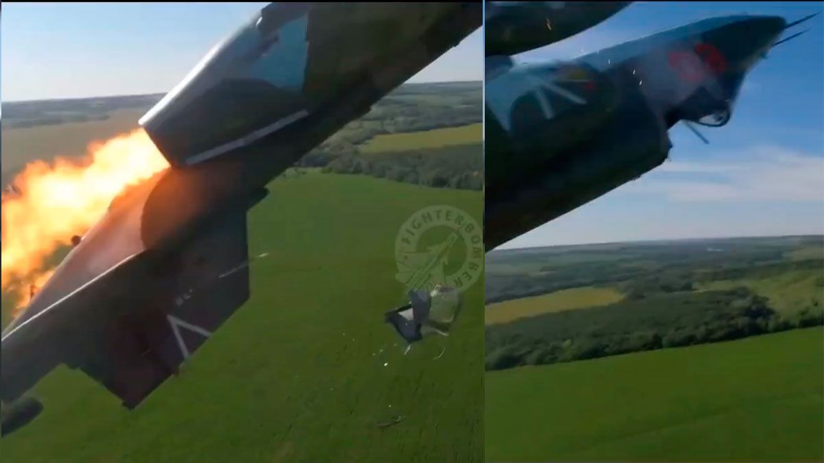 La cuenta de Twitter @Blue_Sauron muestra el video de un piloto ruso, el cual se eyecta de su avión, tras sufrir el impacto de un misil.