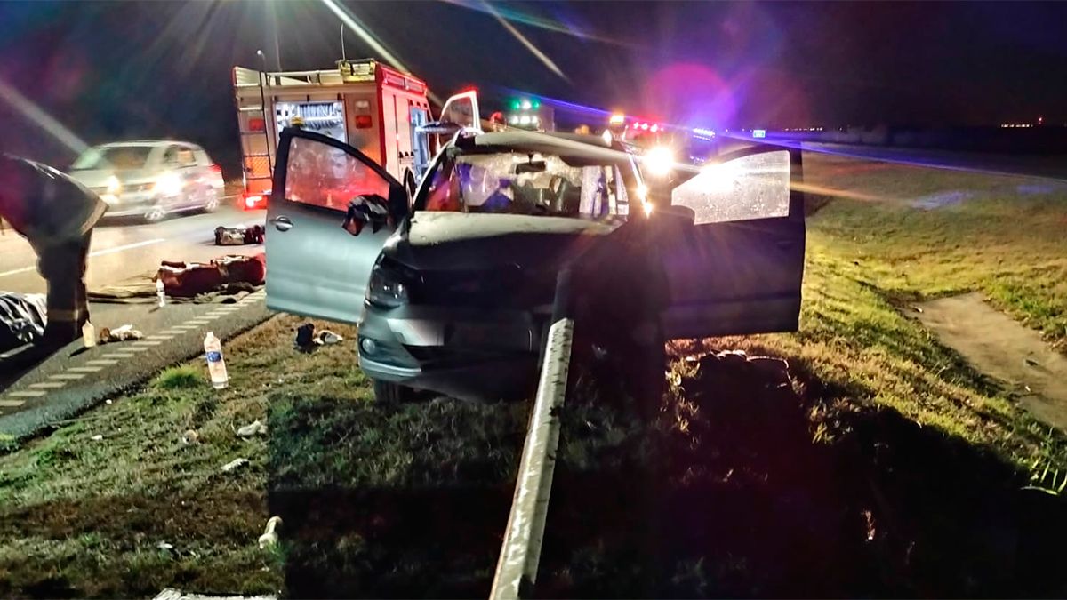 El siniestro ocurrió en la Autopista Rosario-Córdoba entre las localidades de Oliva y Oncativo, a las 3.30, cuando el Volkswagen Suran en el que se trasladaban cuatro mayores y un menor de edad, perdió el control e impactó contra un guardarrail que separa el cantero central.