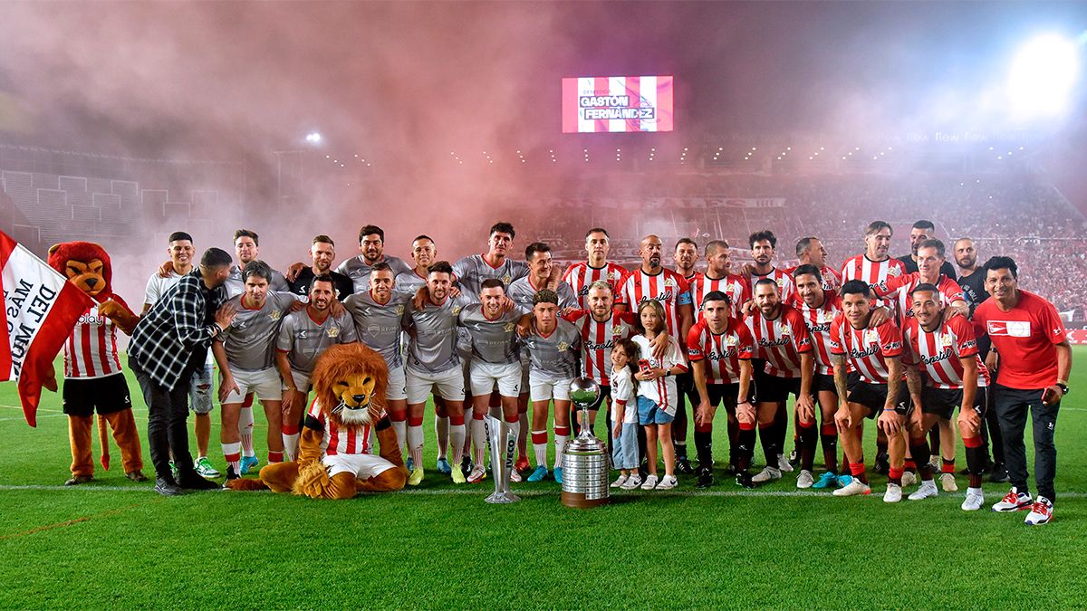 El partido fue una excusa. La "Gata" jugó un tiempo para cada equipo y marcó dos goles para los campeones de la Libertadores y uno para el del Apertura. Además se dio el lujo de compartir cancha con su hijo Lautaro, que también aportó dos tantos.