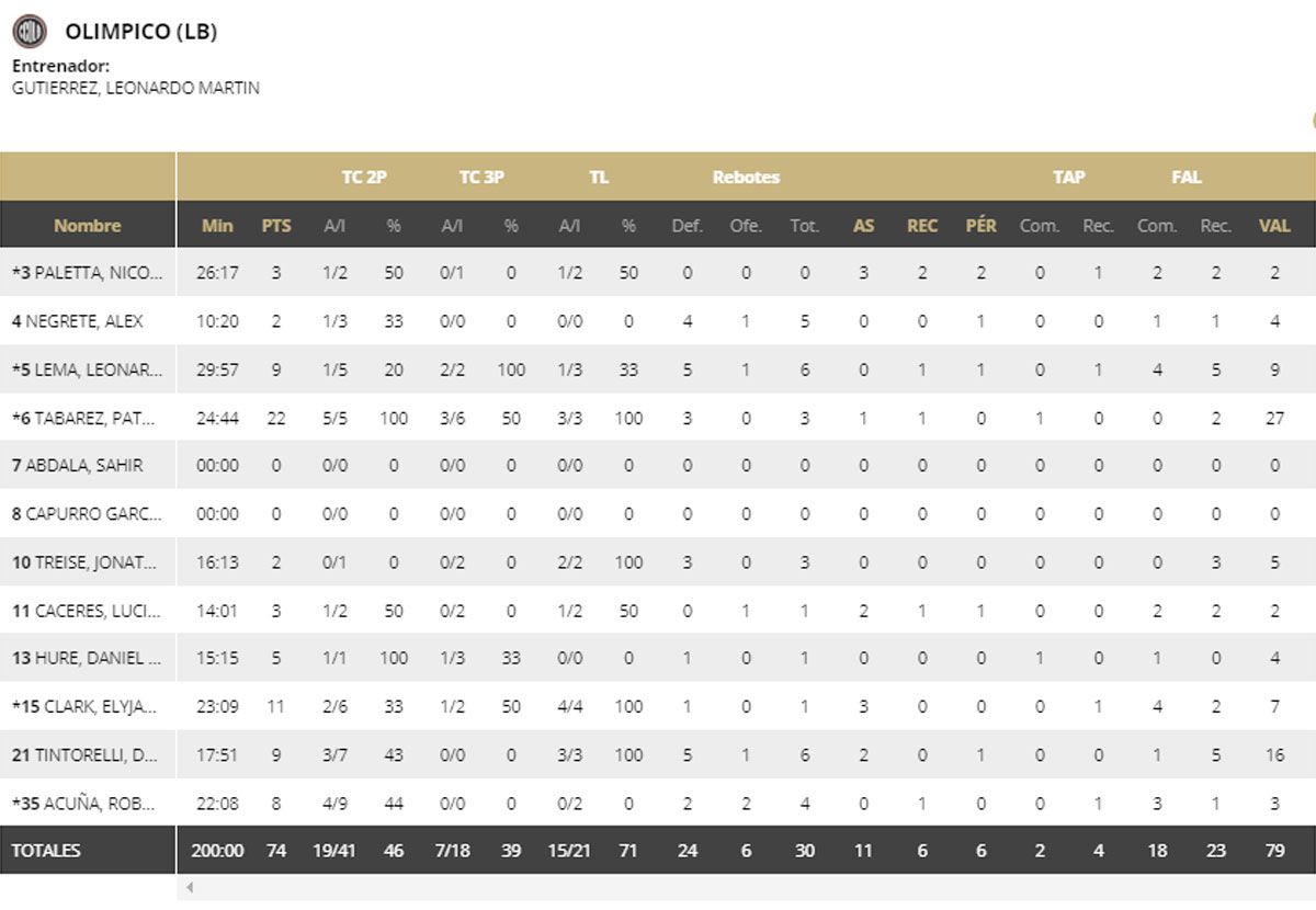 En la segunda mitad, Olímpico alcanzó una luz de 12 puntos promediando el último tramo con un quinteto de refresco (regresaron los cinco titulares), para ponerle cifras definitivas al marcador. Fue 74-70 para el Negro que consiguió su quinta victoria en fila y acentúa su gran arranque.