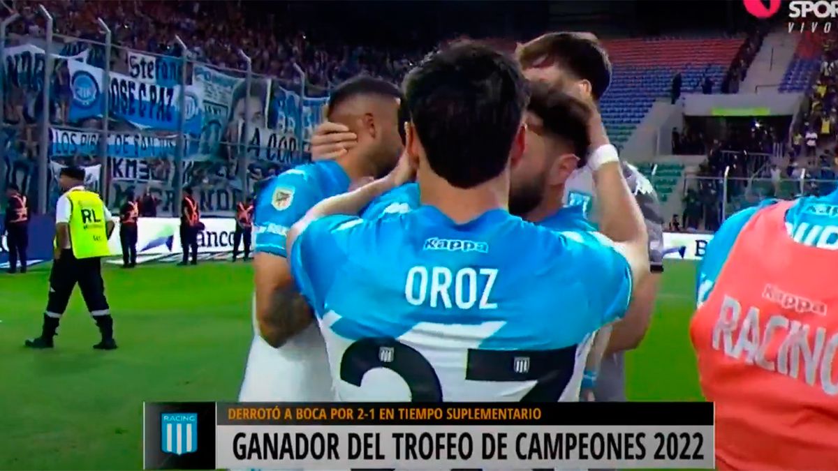 Debido a esto, los jugadores de Racing cantaron en medio de los festejos, “el que no salta, abandonó”. Mirá el video.