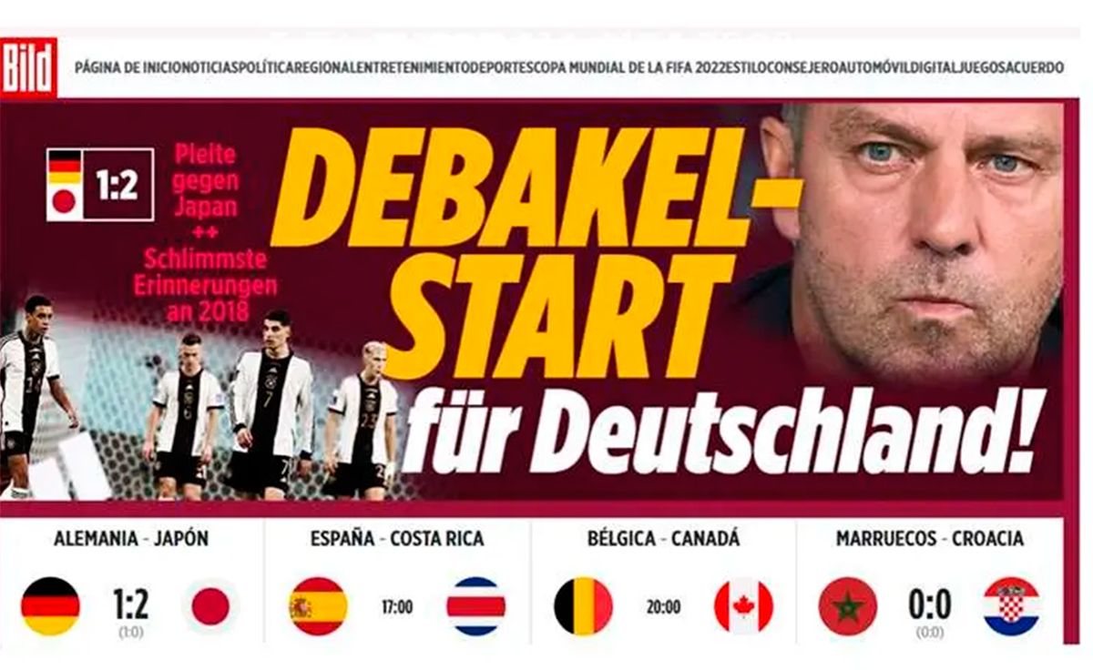 El diario Bild, uno de los más conocidos, habló del "shock" con el que se tomó la derrota contra Japón luego de estar 1 a 0 arriba en el primer tiempo y de fallar varias situaciones claras de gol.