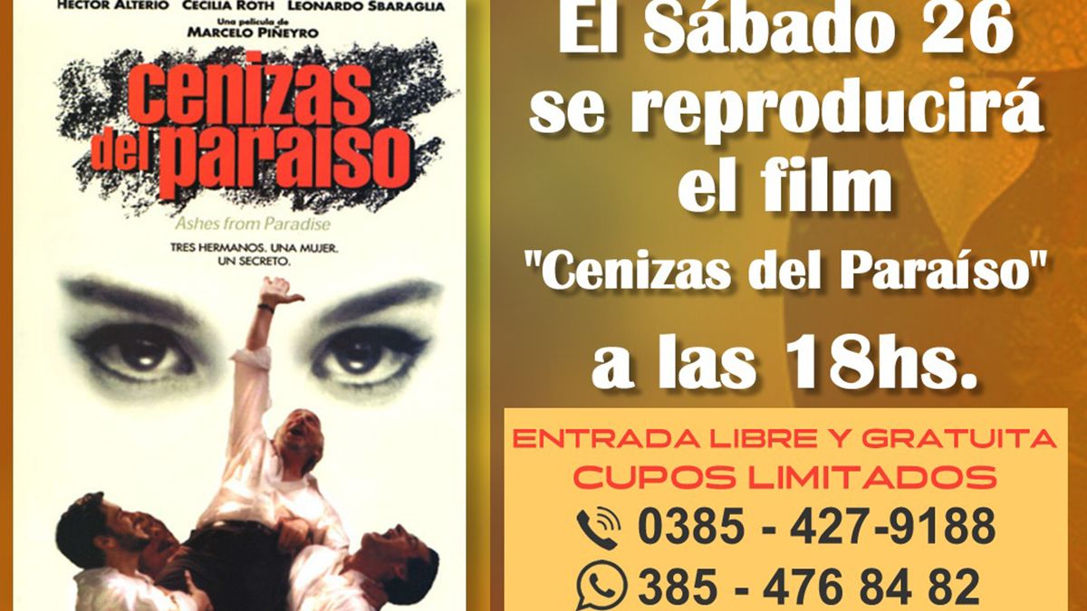 El Cine Teatro Renzi de la ciudad de La Banda, dependiente de la Secretaría de Comunicación, realizará una función especial y gratuita donde se proyectará el filme "Cenizas del Paraíso" en el marco de los 25 años de su estreno.
