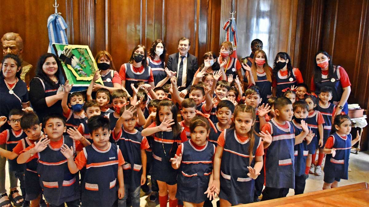 Alumnos del Jardín de Infantes Provincial N° 93 “Grillito”, ubicado en el B° Almirante Brown de la ciudad Capital, realizaron este jueves una visita a la Casa de Gobierno, donde fueron recibidos por el gobernador Gerardo Zamora, quien les dio la bienvenida y felicitó por el destacado desempeño de la institución en la Feria Nacional de Ciencias 2022.