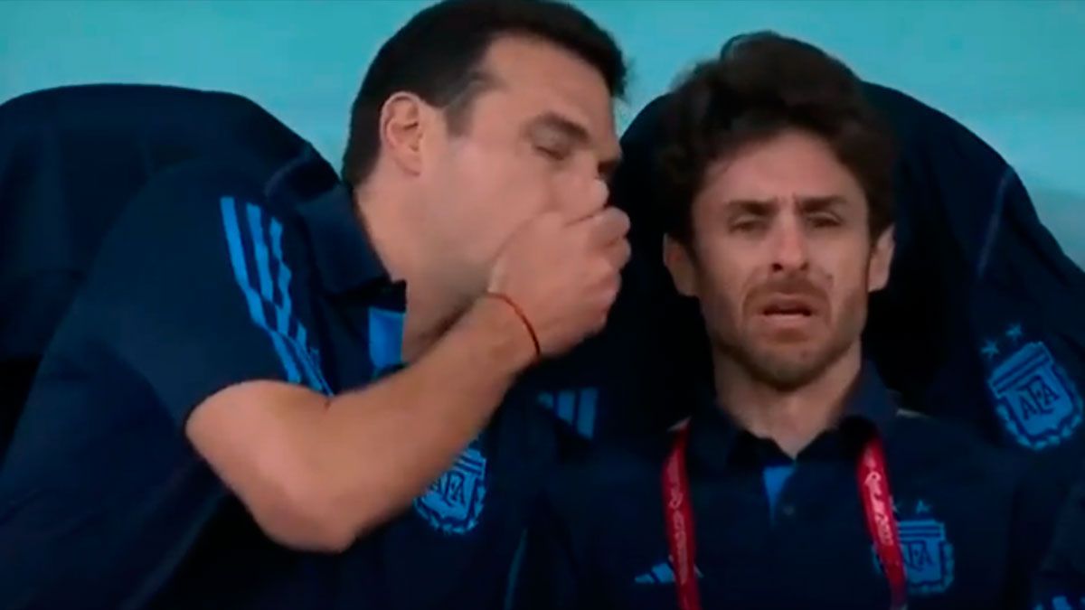 Tras el festejo de los jugadores, la imagen se posó en Scaloni. El entrenador manifestó una palabra y se inclinó hacía delante para dejar caer el peso de sus brazos sobre sus piernas. Con la tarea del deber cumplido, el técnico nacido en la localidad santafesina de Pujato se incorporó y dejó escapar algunas lagrimas en medio de los sentimientos que lo atravesaban.
