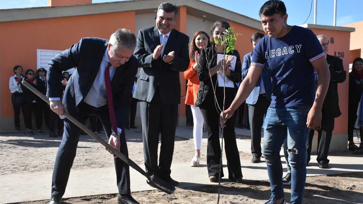 El corte de cintas simbólico se realizó en la vivienda de Sofía Enríquez y Franco Urdiales, quienes también participaron de la plantación de un árbol, como parte del Programa Provincial “Plantando Futuro”, que tiene como propósito alentar a la forestación de zonas urbanas y generar conciencia sobre el cuidado del medioambiente.