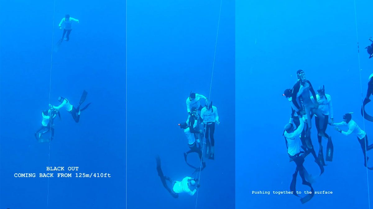 Quedó registrado en video el momento en el que un grupo de buceadores se lanza al rescate para salvar la vida de un apneísta que sufrió un desmayo a 125 metros bajo la superficie del agua.