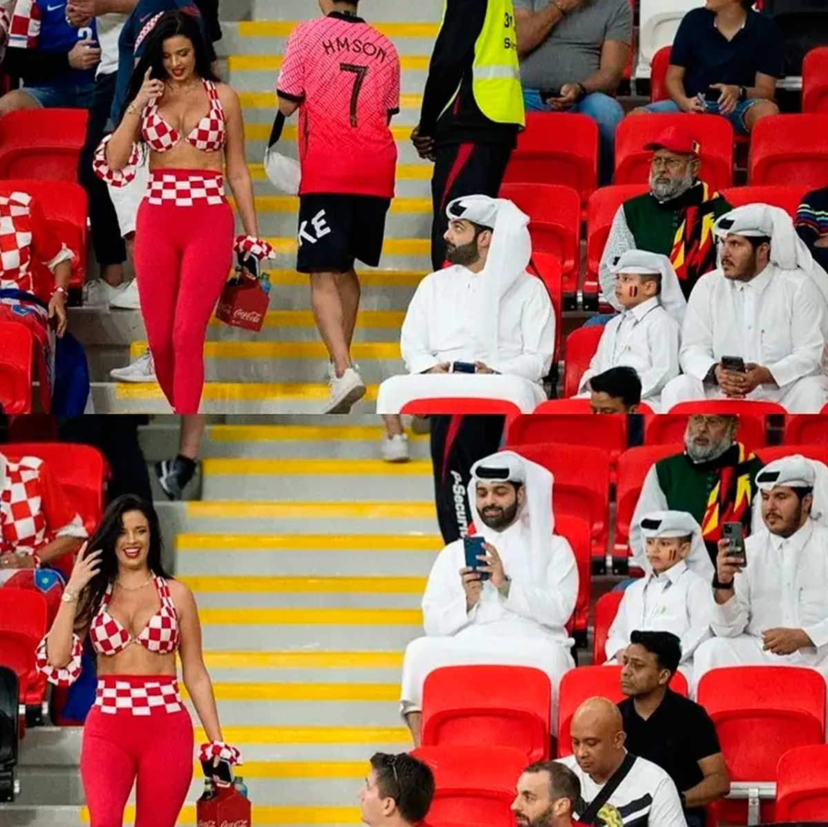 Una foto de la modelo croata Ivana Knoll en las tribunas del Estadio Ahmad bin Ali generó una gran polémica en el Mundial, después de que fanáticos qataríes fueran puestos en evidencia sacándole una foto a la mujer.