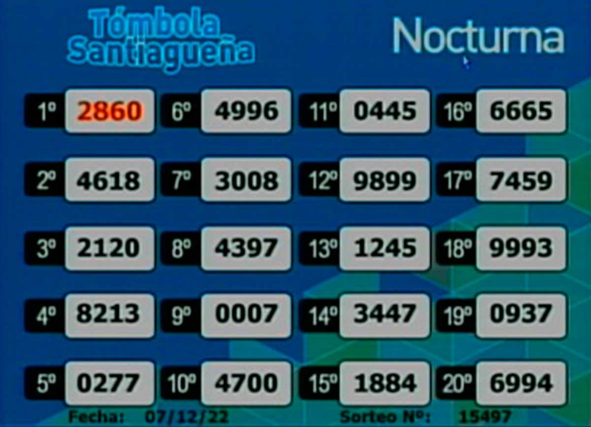Posteriormente, en la edición Nocturna de la Tómbola Santiagueña, el primer premio fue para el 2860. En el Libro de los Sueños el 60 es “la virgen”.