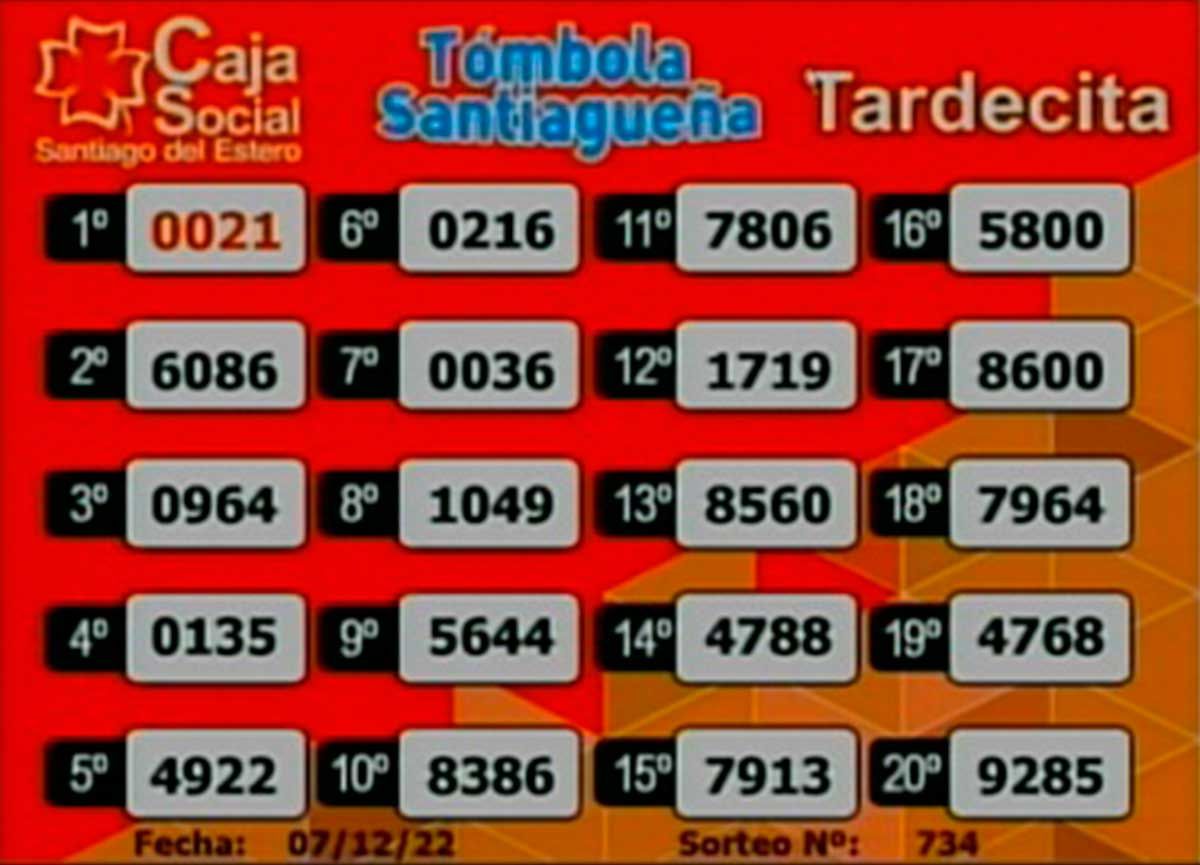 Posteriormente, en la edición La Tardecita de la Tómbola Santiagueña, el primer premio fue para el 0021. En el Libro de los Sueños el 21 es “Mujer”.
