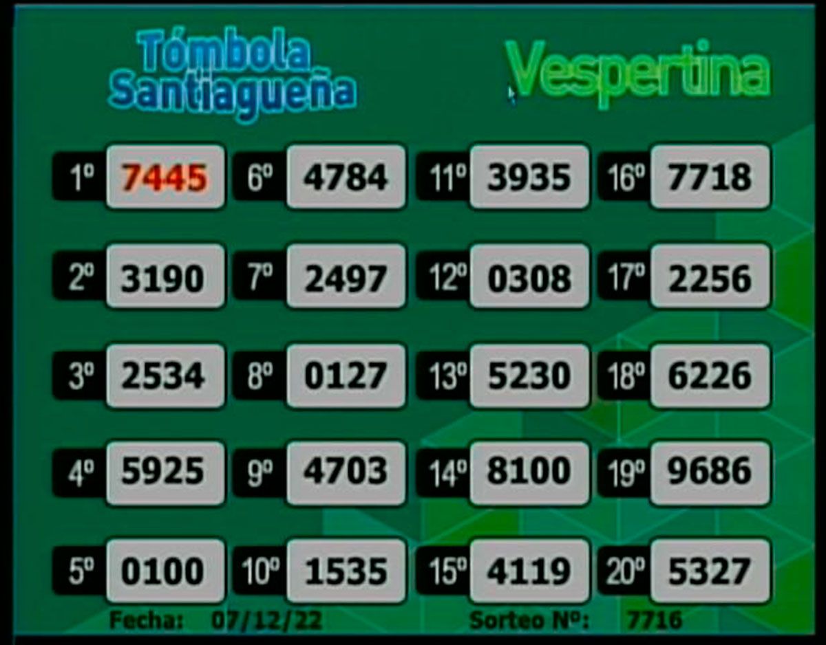 En el sorteo de la Vespertina, el primer premio fue para el 7445. En el libro de los sueños el 45 corresponde a “El Vino”.