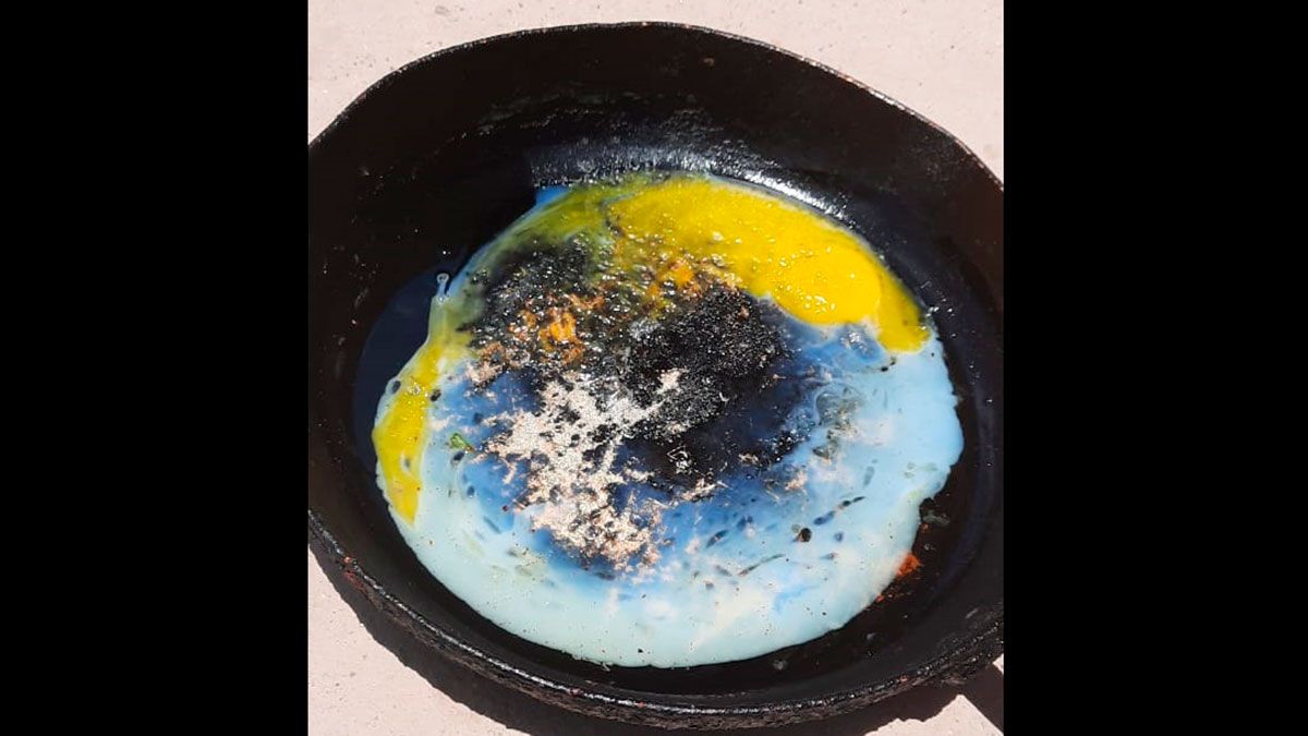Este miércoles, la mujer tomó un huevo y una sartén y salió al patio se casa para hacer la cocción al calor de la tarde.