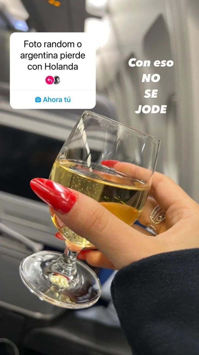 Este miércoles, Lali Espósito volvió a demostrar que el espíritu "anti-mufa" no le escapa a nadie con una nueva publicación en sus redes. Desde el avión camino a Qatar y con un vaso de champán para alivianar el viaje, la morocha cumplió con uno de los retos virales que suelen dar vueltas por Instagram, a horas de un encuentro muy esperado.