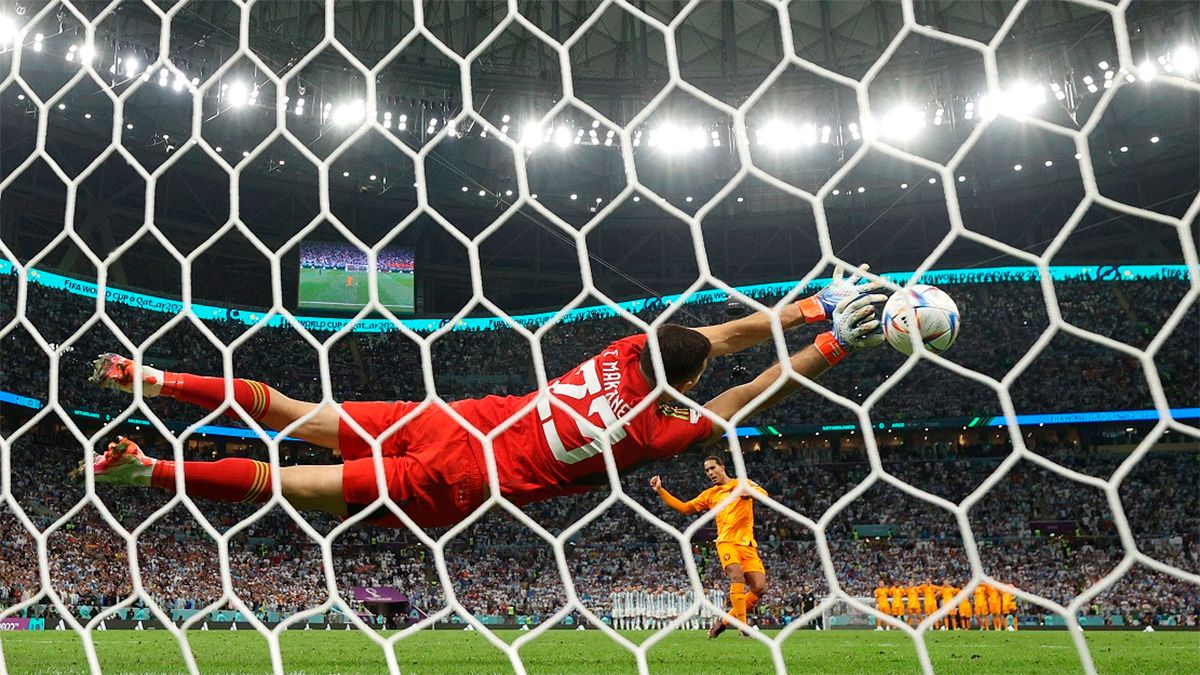 El arquero le tapó los dos primeros envíos al capitán neerlandés Virgil Van Dijk y a Steven Berghuis, lo que encaminó un pase de ronda sentenciado por Lautaro Martínez en la quinta y última ejecución.