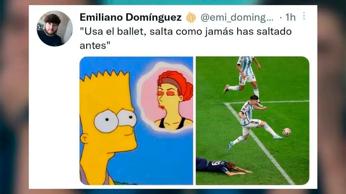 Desde la previa, Twitter se llenó de memes. La tensión y el nerviosismo a horas de que el italiano Daniele Orsato pite el inicio del encuentro se volcaron en la red social del pajarito y pedían una victoria ante los croatas para vengar la derrota en el Mundial de Rusia 2018 y poder llegar a una nueva final, tal como ocurrió en Brasil 2014.