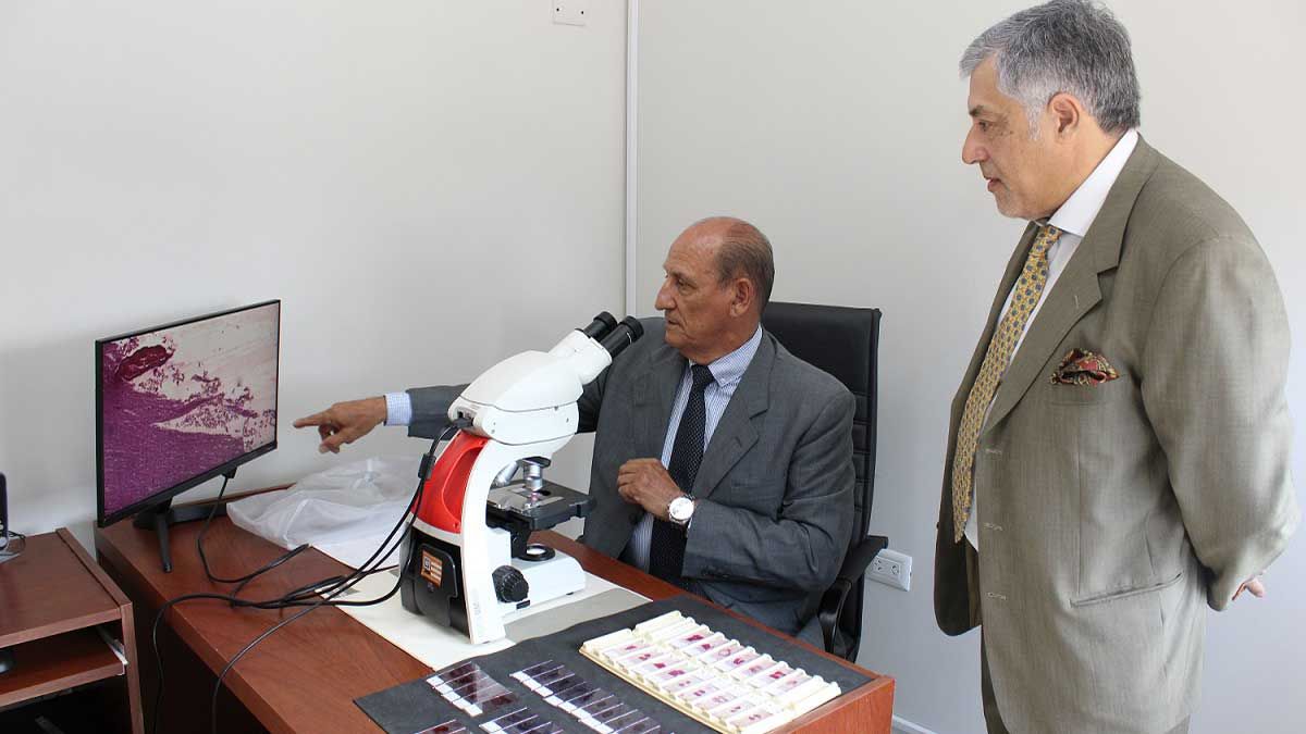 “Seguidamente, esa muestra pasa al microtomo. Cortado eso, se procede a la coloración, la que da la diferenciación de las distintas partes constituyentes del tejido. Una vez coloreado y montado con el vidrio, se pasa a la sala de informes, que cuenta con un microscopio de avanzada, que muestra en la pantalla lo que el médico está viendo y automáticamente, como tiene cámara incorporada, fija la fotografía”.