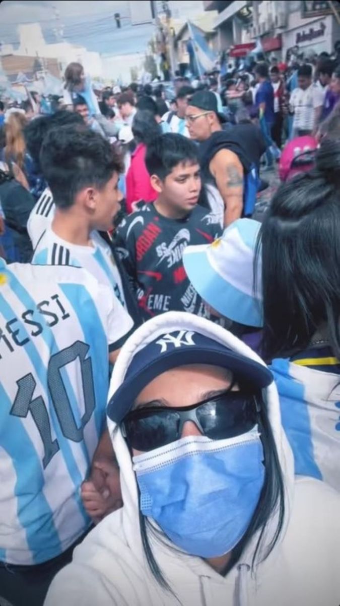 Cuando el partido terminó y Argentina se consagró Campeón del Mundo, todos salieron a celebrar a las calles y la cantante no se iba a quedar atrás. Se alejó de sus custodios, se puso lentes, gorra, capucha y tapabocas para luego camuflarse entre la multitud y celebrar el triunfo.