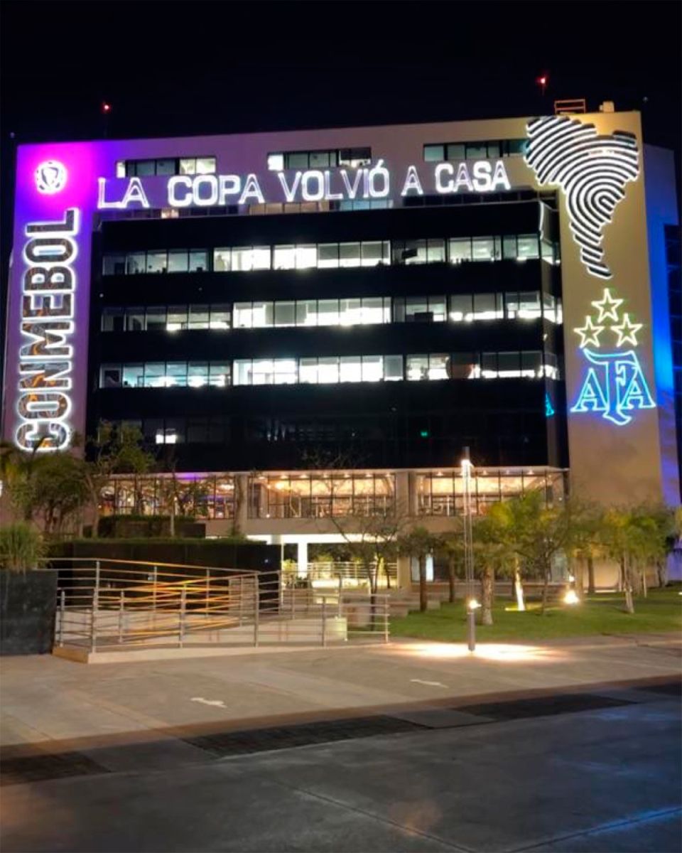La Confederación Sudamericana de Fútbol homenajeó al seleccionado argentino, liderado por el astro Lionel Messi, por la obtención del título del mundo en Qatar con un mensaje que dice "La Copa volvió a casa" en el edificio que posee en la ciudad de Luque, Paraguay.