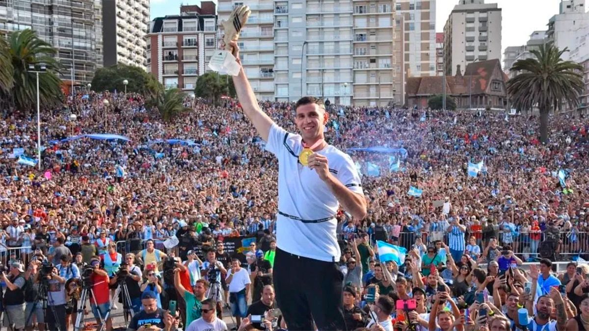 “Es la mejor hinchada del mundo. Yo les dije que les iba a traer la Copa”, comenzó Dibu en sus primeras palabras ante su gente. Con la medalla de campeón, el arquero se mostró emocionado y agradecido con el público por el aliento a la Selección durante Qatar 2022. Además, prometió que intentará ganar la cuarta Copa del Mundo en 2026.