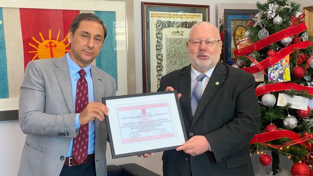 Durante la reunión, Gotelli, quien es consultor en ceremonial y relaciones Institucionales, condecorado a nivel nacional e internacional en varias ocasiones por su excelencia y formador de instituciones académicas y gubernamentales de todo el país, entregó al vicegobernador un Diploma al Mérito Institucional.
