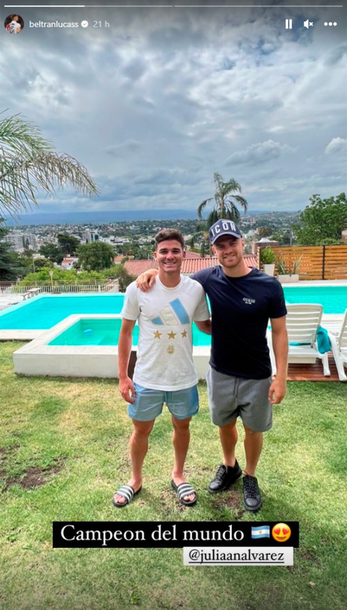El mundo del fútbol puso una pausa este fin de semana para celebrar Navidad y muchos futbolistas aprovecharon para estar con sus seres queridos, como es el caso del plantel de River que volverá al trabajo el lunes. Es por eso que Lucas Beltrán se tomó unos días y se reencontró con Julián Álvarez, flamante campeón del mundo con la Selección Argentina y su excompañero en el Millonario.