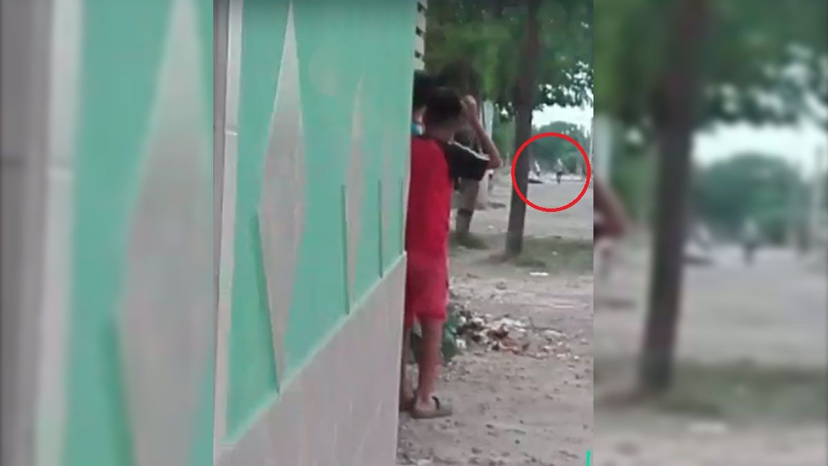 A través del WhatsApp de las Noticias de Diario Panorama (3855795000) enviaron el video del momento exacto en que recibió el disparo el joven identificado como Lautaro Rodríguez.