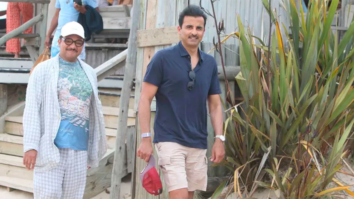 También en este viaje a las playas esteñas, el emir se mostró en bermudas y chomba azul, muy alejado a su vestimenta tradicional que lució durante la copa del mundo en Doha.