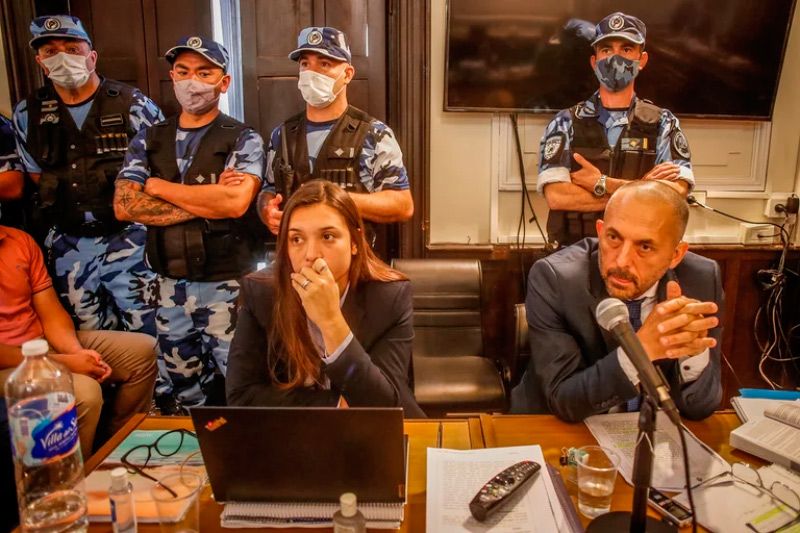 Sentada junto a Hugo Tomei, el otro abogado defensor, la joven siguió cada instante del juicio, así como las oportunidades en las que el Tribunal Oral Criminal N°1 de Dolores rechazó las nulidades presentadas por la defensa para que se cayera el juicio.