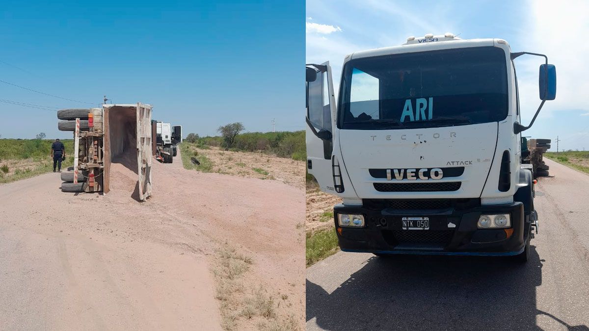 Como consecuencia la batea terminó volcada sobre la ruta y la carga de ripio esparcida hacia un lateral de la banquina.