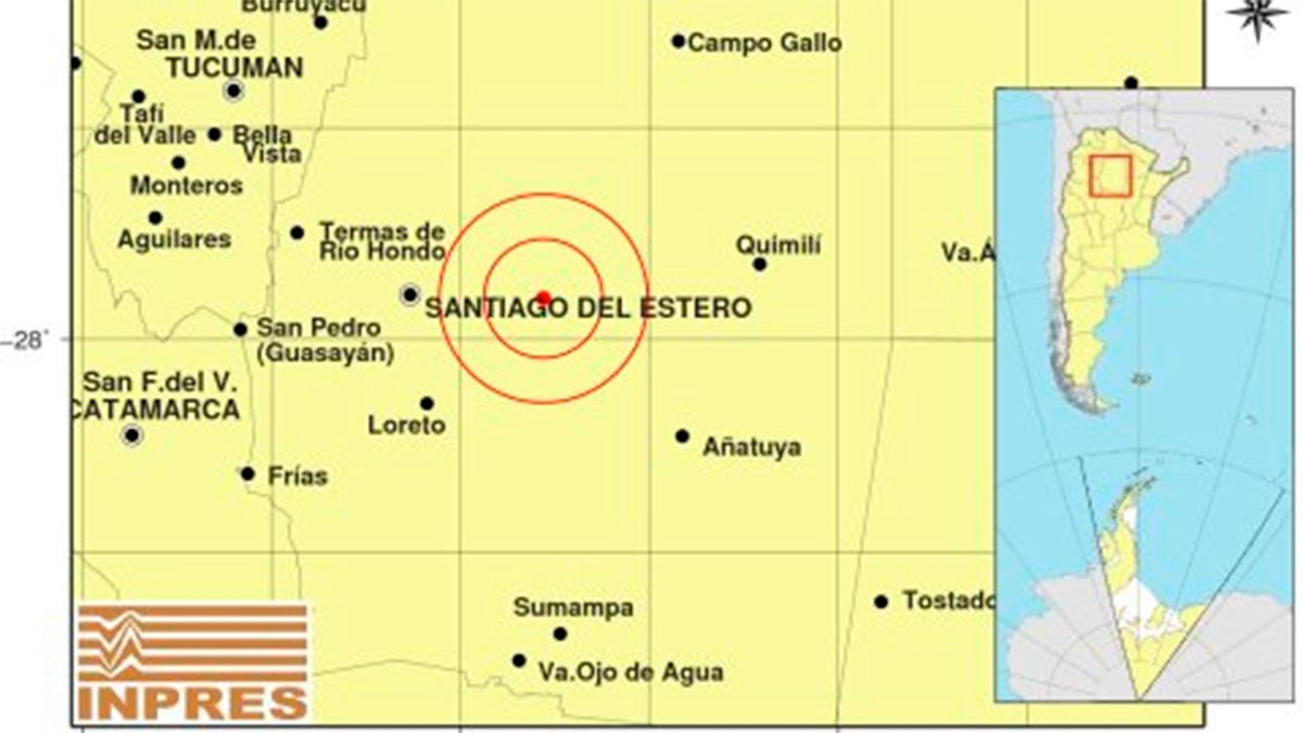 El organismo precisó que el epicentro fue a 69 kilómetros al Este de la ciudad de Santiago del Estero; 169 kilómetros al Sudeste de Sabn Miguel de Tucumán y 81 kilómetros al Noreste de la ciudad de Loreto.