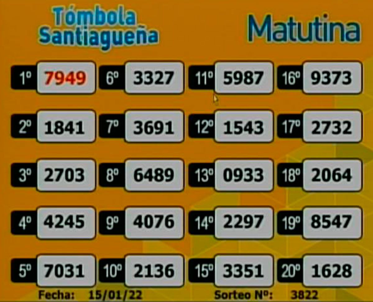 Este domingo 15 de enero de 2023, como todos los días, se llevó a cabo un nuevo sorteo de la Tómbola Santiagueña.