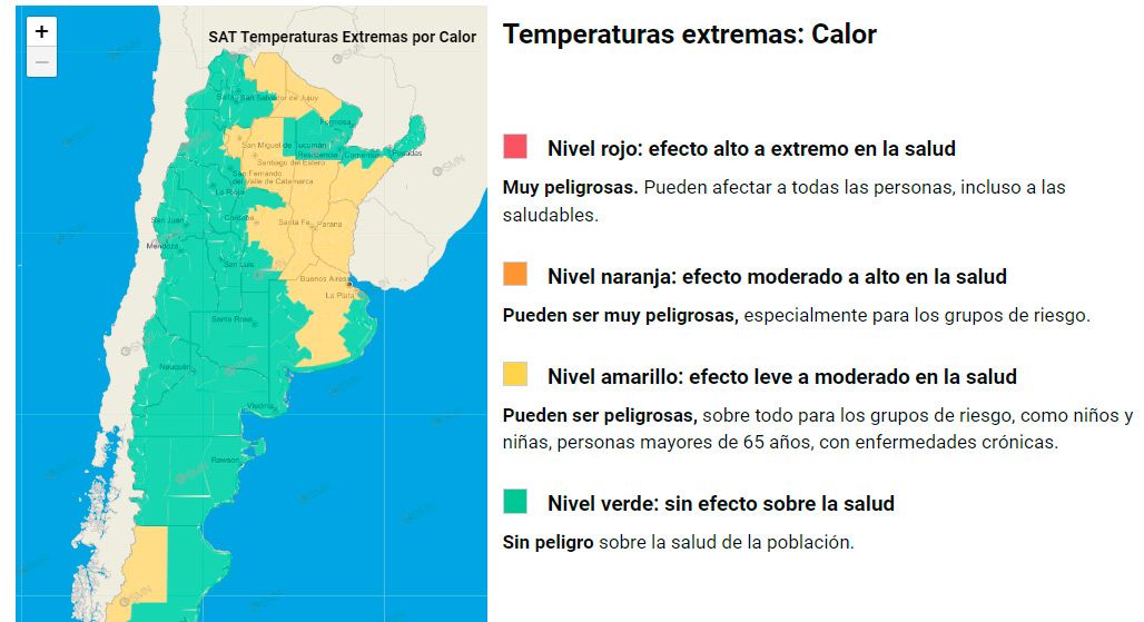 Precisamente, el Servicio Meteorológico Nacional emitió el alerta para casi todo el territorio provincial. El nivel amarillo, según su reporte, significa que el calor puede generar efecto leve a moderado en la salud de las personas, y puede significar un peligro.