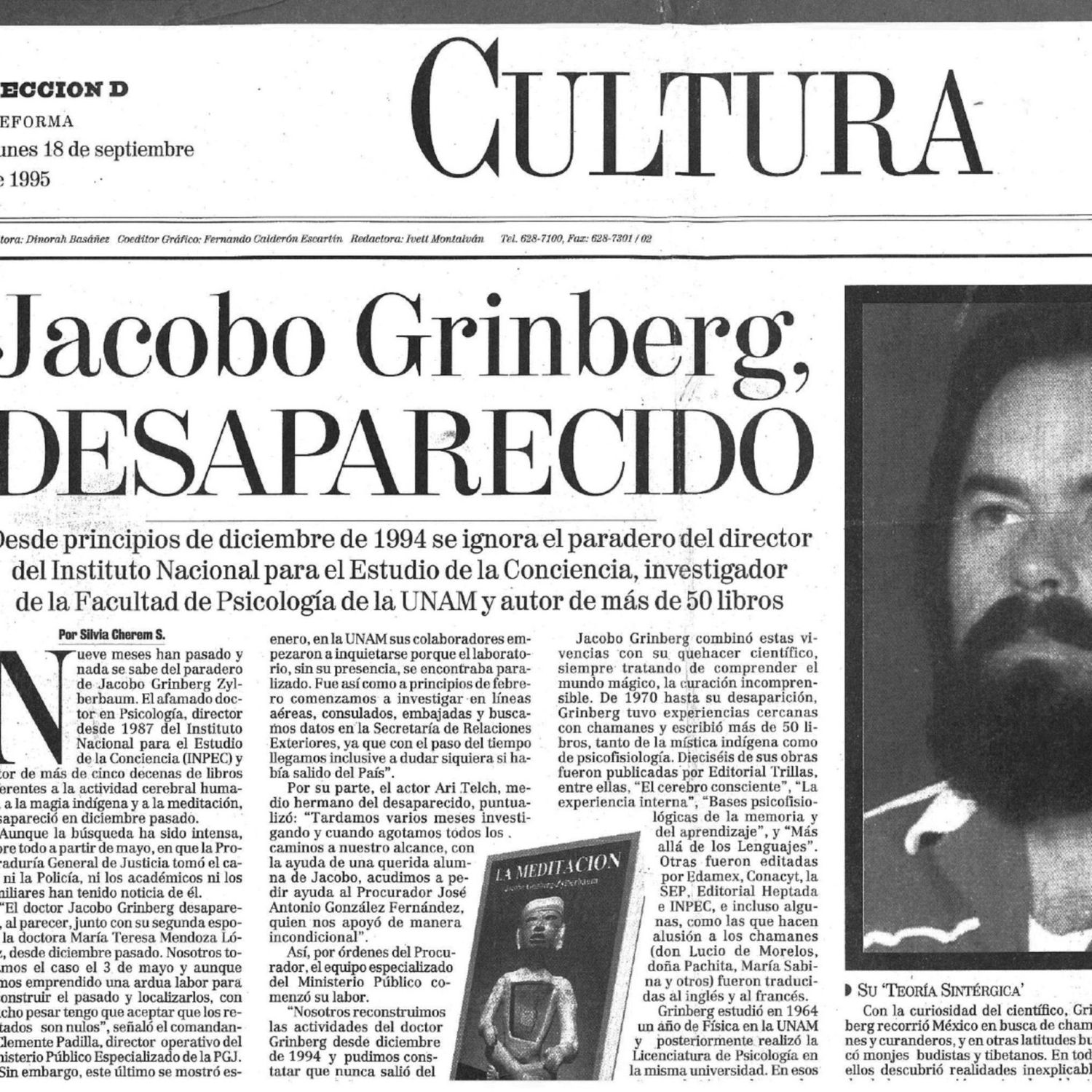 En diciembre de 1994 Jacobo Grinberg desapareció de forma increíble. Ese día, el investigador no se presentó a dar sus clases ni a su laboratorio, pero el alerta la dio su familia cuando el 12 de diciembre, día de su cumpleaños, no acudió a la celebración preparada para él.