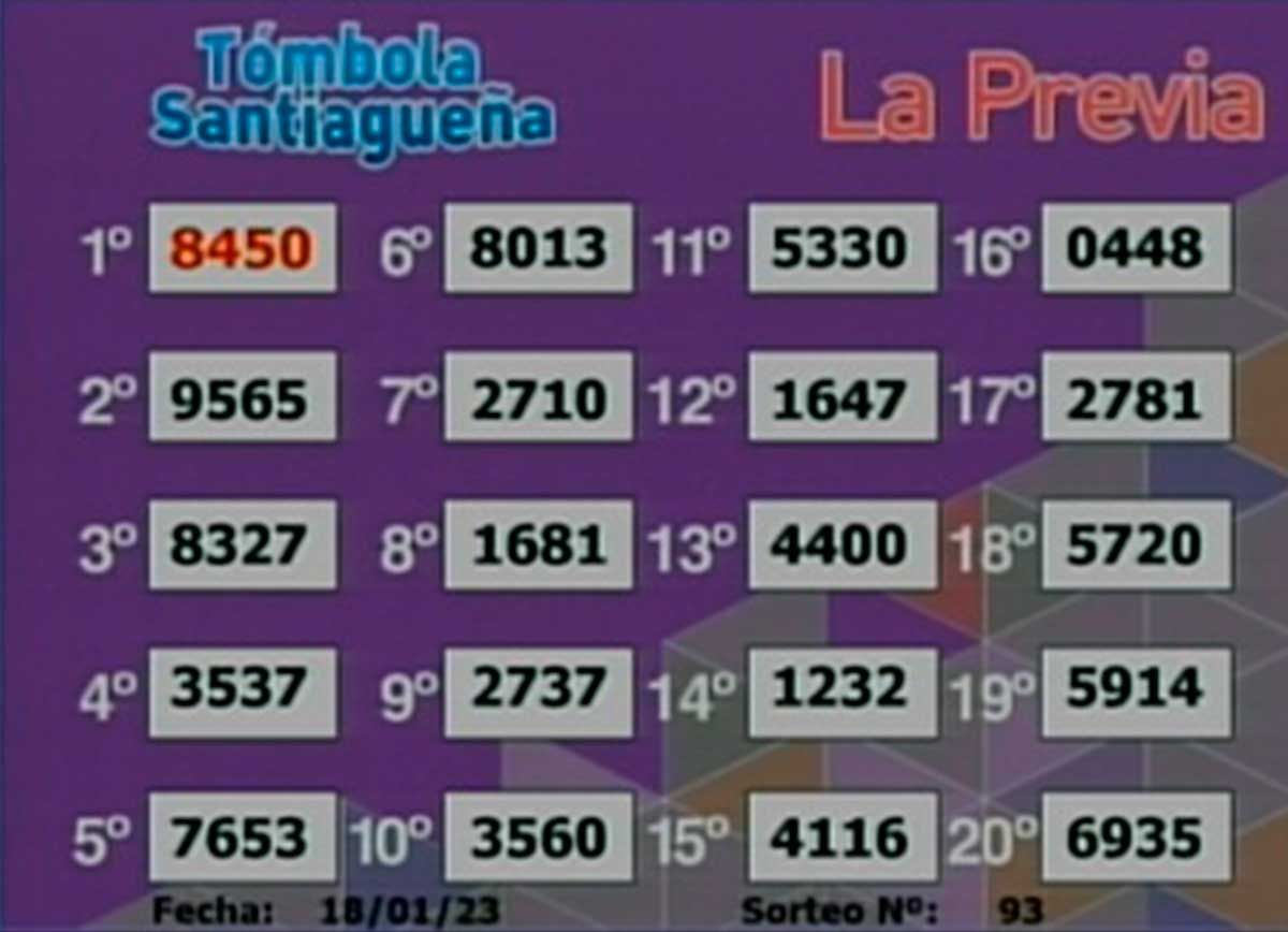 La lista completa de números del sorteo La Previa: