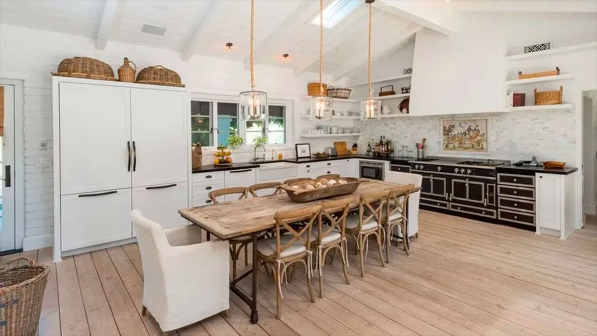 La residencia de más de 550 m² en una sola planta está rodeada de cerca de 1200 árboles y plantas, entre eucaliptos, aguacateros y rosales, y cuenta además con una piscina de agua salada y spa.