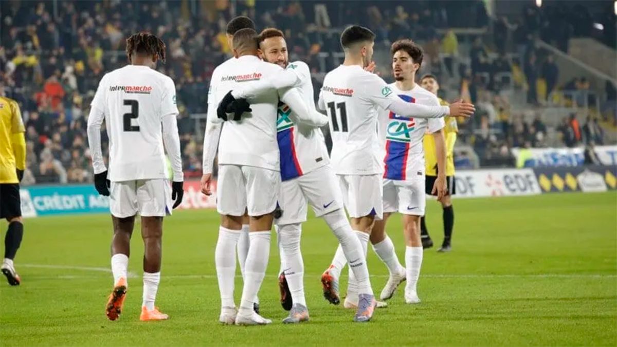 Paris Saint-Germain, sin su estrella argentina campeón del mundo en Qatar 2022, Lionel Messi, pero con un brillante Kylian Mbappe y el brasileño Neymar, goleó a Pays de Cassels, que participa en la sexta división del fútbol galo, por 7 a 0, como visitante, y pasó a octavos de final de la Copa de Francia.