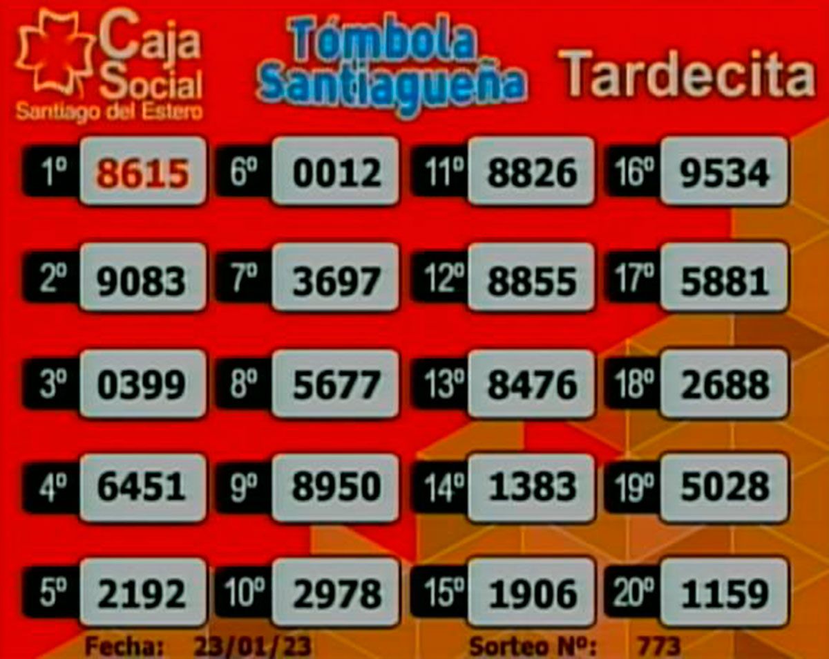 Este lunes 23 de enero del 2023, como todos los días, se llevó a cabo un nuevo sorteo de la Tómbola Santiagueña.