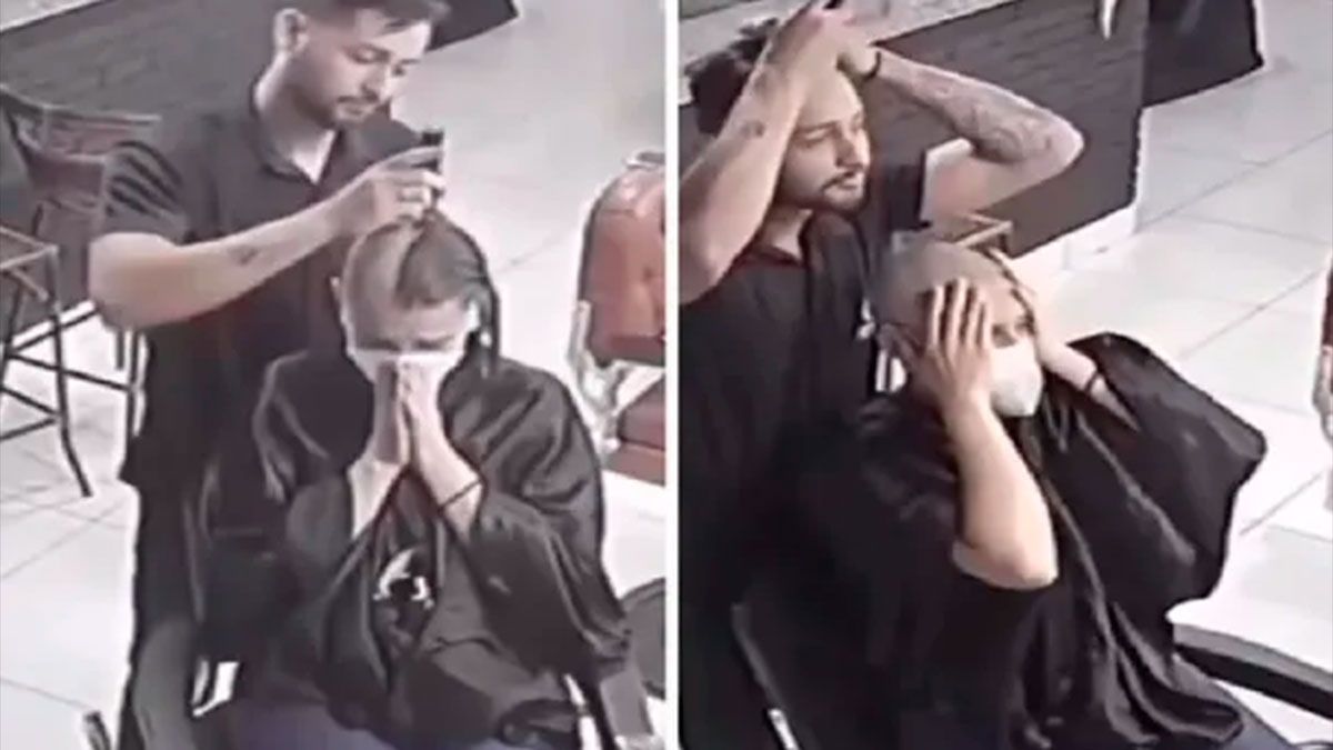Una cámara de seguridad captó el momento en que una mujer asiste a la peluquería para raparse el cabello y la reacción del peluquero se volvió viral.