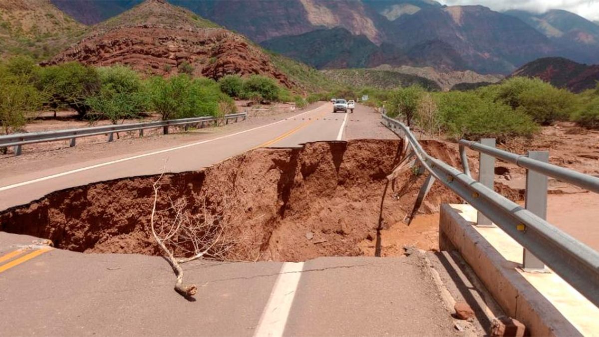 El puente sobre la ruta nacional 68, a la altura del paraje Morales, rumbo a Cafayate desde la ciudad de Salta, se derrumbó tras días de intensas lluvias que provocaron la crecida de ríos y arroyos de la zona.