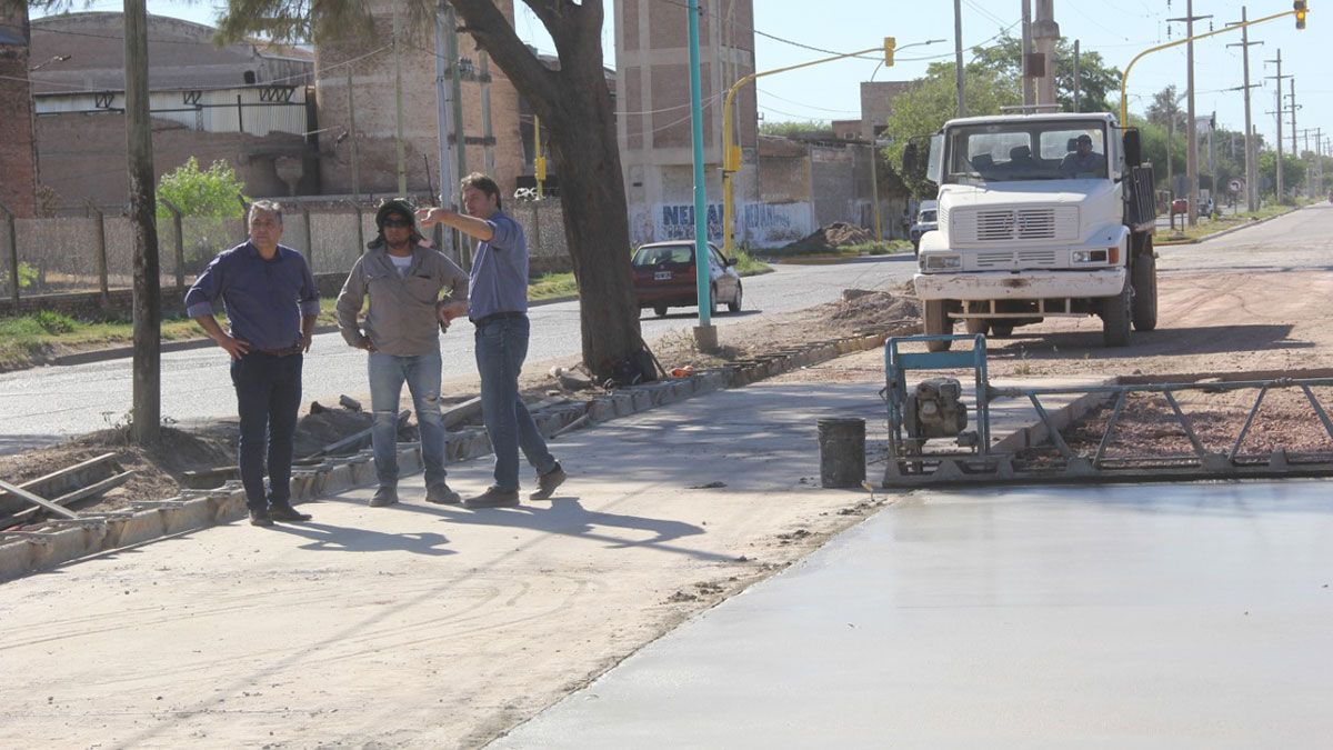 En la oportunidad, el jefe comunal acompañado por el secretario de Obras Públicas, Cristian Alzamora, supervisó la obra en su última etapa, donde el equipo de mencionada área se encuentra colocando el hormigón del sector faltante para poder habilitar al tránsito dicha avenida.